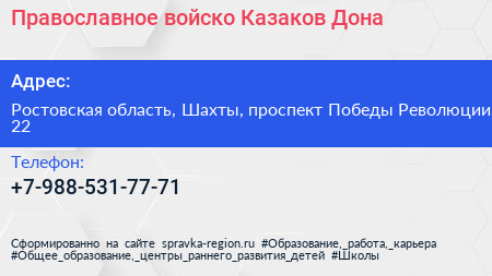 Православное войско Казаков Дона по адресу Ростовская область, Шахты, проспект Победы Революции, 22 в дальнейшем Организация, размещена в следующих категориях: