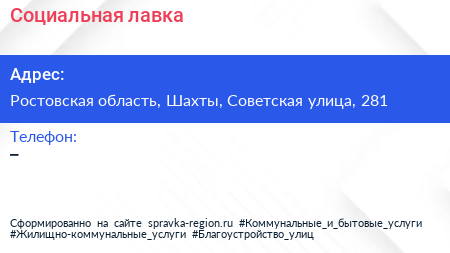 Социальная лавка по адресу Ростовская область, Шахты, Советская улица, 281 в дальнейшем Организация, размещена в следующих категориях: