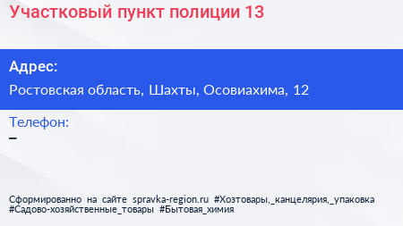 Участковый пункт полиции №13 по адресу Ростовская область, Шахты, Осовиахима, 12 в дальнейшем Организация, размещена в следующих категориях: