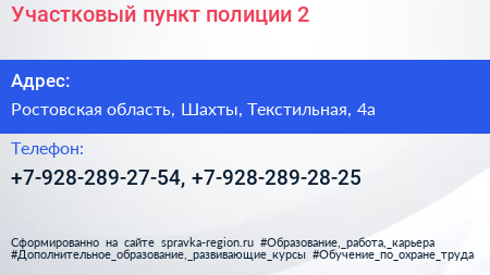 Участковый пункт полиции №2 по адресу Ростовская область, Шахты, Текстильная, 4а в дальнейшем Организация, размещена в следующих категориях: