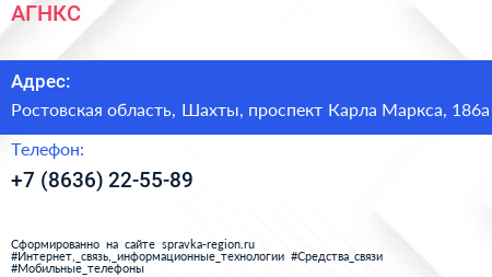 Для связи с организацией воспользуйтесь номером телефона: +7 (8636) 22-55-89. Ежедневно с 00:00 до 07:30. технический перерыв: пн-вс 19:30-20:00, вы можете обратиться в эту организацию.