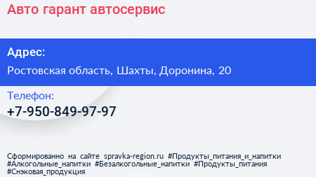 Авто-гарант, автосервис по адресу Ростовская область, Шахты, Доронина, 20 в дальнейшем Организация, размещена в следующих категориях: