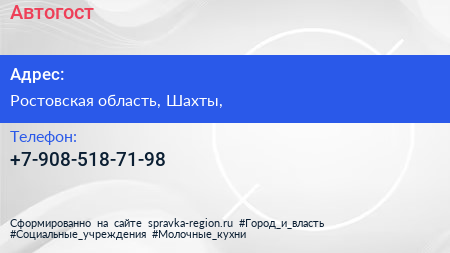 Автогост по адресу Ростовская область, Шахты, в дальнейшем Организация, размещена в следующих категориях: