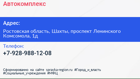Автокомплекс по адресу Ростовская область, Шахты, проспект Ленинского Комсомола, 1д в дальнейшем Организация, размещена в следующих категориях: