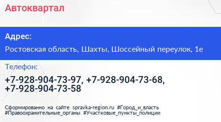 Автоквартал по адресу Ростовская область, Шахты, Шоссейный переулок, 1е в дальнейшем Организация, размещена в следующих категориях: