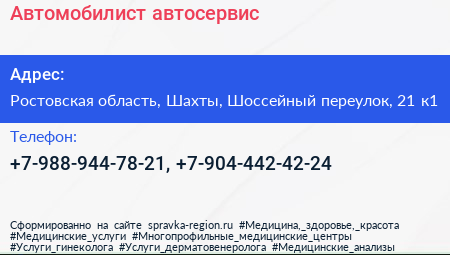 Автомобилист, автосервис по адресу Ростовская область, Шахты, Шоссейный переулок, 21 к1 в дальнейшем Организация, размещена в следующих категориях: