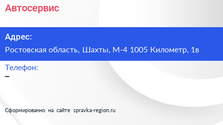 Автосервис по адресу Ростовская область, Шахты, М-4 1005 Километр, 1в в дальнейшем Организация, размещена в следующих категориях:
