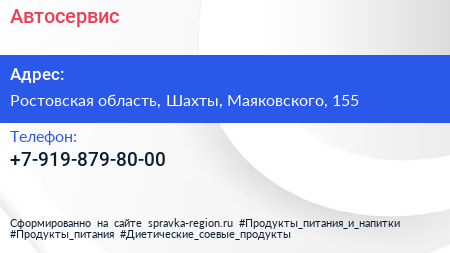Автосервис по адресу Ростовская область, Шахты, Маяковского, 155 в дальнейшем Организация, размещена в следующих категориях: