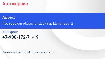 Автосервис по адресу Ростовская область, Шахты, Цуканова, 2 в дальнейшем Организация, размещена в следующих категориях: