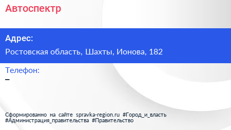 Автоспектр по адресу Ростовская область, Шахты, Ионова, 182 в дальнейшем Организация, размещена в следующих категориях: