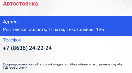 Автостоянка по адресу Ростовская область, Шахты, Текстильная, 19Б в дальнейшем Организация, размещена в следующих категориях:
