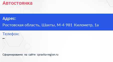 Автостоянка по адресу Ростовская область, Шахты, М-4 981 Километр, 1а в дальнейшем Организация, размещена в следующих категориях: