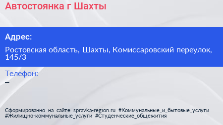 Автостоянка, г. Шахты по адресу Ростовская область, Шахты, Комиссаровский переулок, 145/3 в дальнейшем Организация, размещена в следующих категориях: