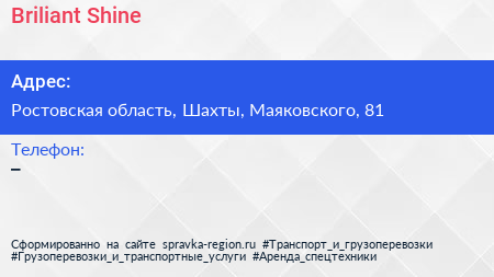 Briliant Shine по адресу Ростовская область, Шахты, Маяковского, 81 в дальнейшем Организация, размещена в следующих категориях:
