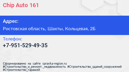 Chip-Auto 161 по адресу Ростовская область, Шахты, Кольцевая, 2Б в дальнейшем Организация, размещена в следующих категориях: