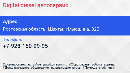 Digital diesel, автосервис по адресу Ростовская область, Шахты, Ильюшина, 32Б в дальнейшем Организация, размещена в следующих категориях: