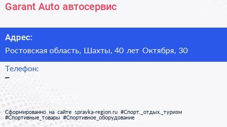 Garant Auto, автосервис по адресу Ростовская область, Шахты, 40 лет Октября, 30 в дальнейшем Организация, размещена в следующих категориях: