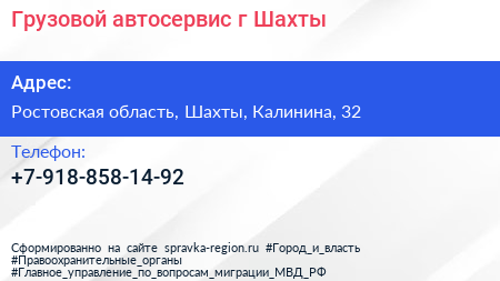 Грузовой автосервис, г. Шахты по адресу Ростовская область, Шахты, Калинина, 32 в дальнейшем Организация, размещена в следующих категориях: