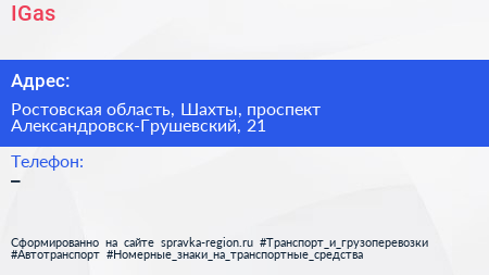 IGas по адресу Ростовская область, Шахты, проспект Александровск-Грушевский, 21 в дальнейшем Организация, размещена в следующих категориях: