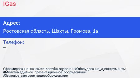 IGas по адресу Ростовская область, Шахты, Громова, 1а в дальнейшем Организация, размещена в следующих категориях: