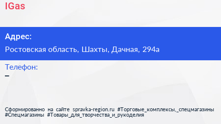 IGas по адресу Ростовская область, Шахты, Дачная, 294а в дальнейшем Организация, размещена в следующих категориях: