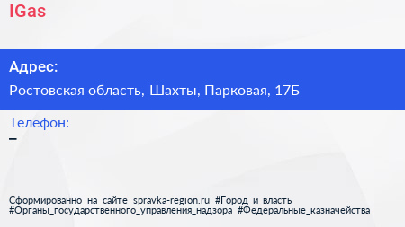 IGas по адресу Ростовская область, Шахты, Парковая, 17Б в дальнейшем Организация, размещена в следующих категориях: