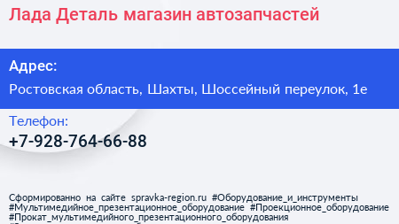 Лада Деталь, магазин автозапчастей по адресу Ростовская область, Шахты, Шоссейный переулок, 1е в дальнейшем Организация, размещена в следующих категориях: