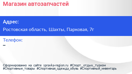 Магазин автозапчастей по адресу Ростовская область, Шахты, Парковая, 7г в дальнейшем Организация, размещена в следующих категориях: