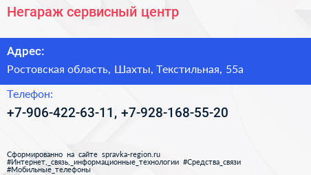 Негараж, сервисный центр по адресу Ростовская область, Шахты, Текстильная, 55а в дальнейшем Организация, размещена в следующих категориях: