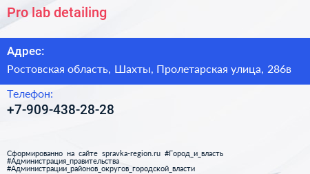 Pro lab detailing по адресу Ростовская область, Шахты, Пролетарская улица, 286в в дальнейшем Организация, размещена в следующих категориях: