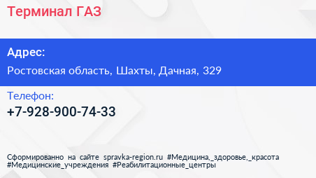 Терминал-ГАЗ по адресу Ростовская область, Шахты, Дачная, 329 в дальнейшем Организация, размещена в следующих категориях: