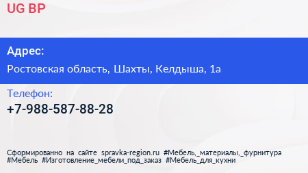 UG BP по адресу Ростовская область, Шахты, Келдыша, 1а в дальнейшем Организация, размещена в следующих категориях: