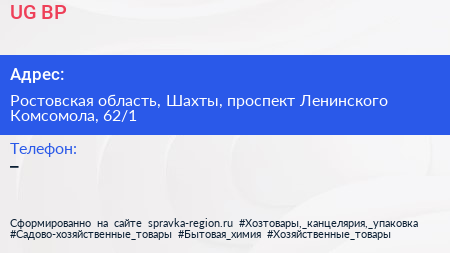 UG BP по адресу Ростовская область, Шахты, проспект Ленинского Комсомола, 62/1 в дальнейшем Организация, размещена в следующих категориях: