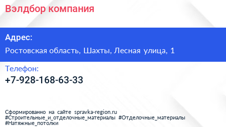 Вэлдбор, компания по адресу Ростовская область, Шахты, Лесная улица, 1 в дальнейшем Организация, размещена в следующих категориях: