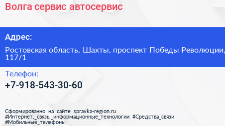 Волга-сервис, автосервис по адресу Ростовская область, Шахты, проспект Победы Революции, 117/1 в дальнейшем Организация, размещена в следующих категориях: