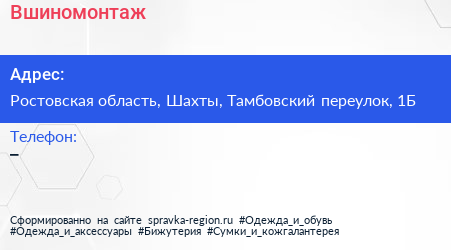 Вшиномонтаж по адресу Ростовская область, Шахты, Тамбовский переулок, 1Б в дальнейшем Организация, размещена в следующих категориях: