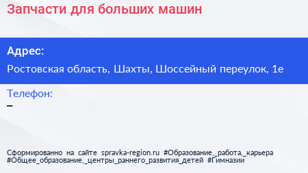 Запчасти для больших машин по адресу Ростовская область, Шахты, Шоссейный переулок, 1е в дальнейшем Организация, размещена в следующих категориях: