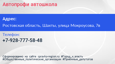 Автопрофи, автошкола по адресу Ростовская область, Шахты, улица Мокроусова, 7в в дальнейшем Организация, размещена в следующих категориях: