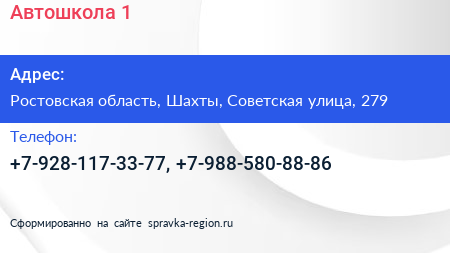 Автошкола №1 по адресу Ростовская область, Шахты, Советская улица, 279 в дальнейшем Организация, размещена в следующих категориях: