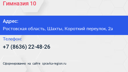 Гимназия №10 по адресу Ростовская область, Шахты, Короткий переулок, 2а в дальнейшем Организация, размещена в следующих категориях: