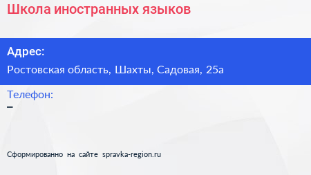Школа иностранных языков по адресу Ростовская область, Шахты, Садовая, 25а в дальнейшем Организация, размещена в следующих категориях: