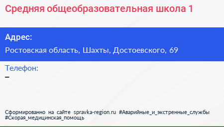 Средняя общеобразовательная школа №1 по адресу Ростовская область, Шахты, Достоевского, 69 в дальнейшем Организация, размещена в следующих категориях: