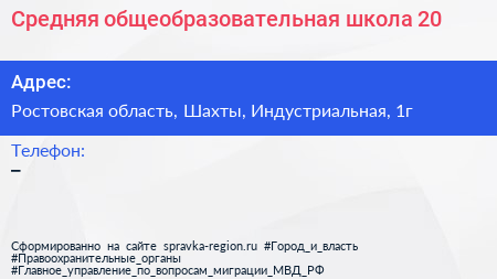 Средняя общеобразовательная школа №20 по адресу Ростовская область, Шахты, Индустриальная, 1г в дальнейшем Организация, размещена в следующих категориях: