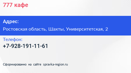 777, кафе по адресу Ростовская область, Шахты, Университетская, 2 в дальнейшем Организация, размещена в следующих категориях: