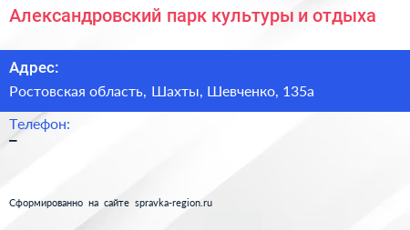 Александровский парк культуры и отдыха по адресу Ростовская область, Шахты, Шевченко, 135а в дальнейшем Организация, размещена в следующих категориях: