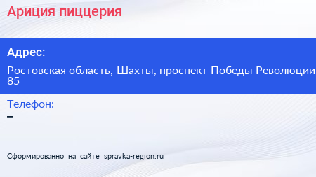 Ариция, пиццерия по адресу Ростовская область, Шахты, проспект Победы Революции, 85 в дальнейшем Организация, размещена в следующих категориях: