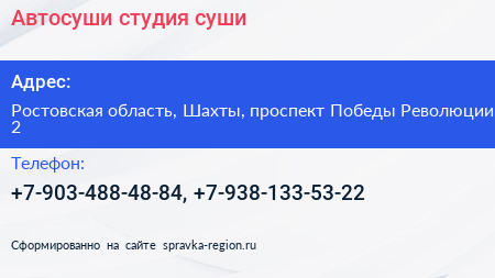 Автосуши, студия суши по адресу Ростовская область, Шахты, проспект Победы Революции, 2 в дальнейшем Организация, размещена в следующих категориях: