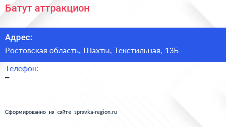 Батут, аттракцион по адресу Ростовская область, Шахты, Текстильная, 13Б в дальнейшем Организация, размещена в следующих категориях: