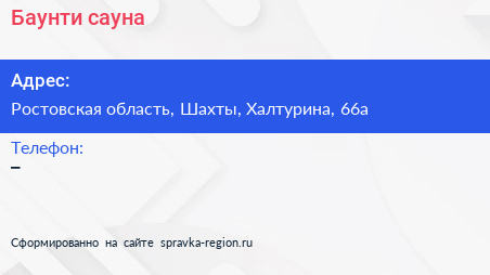 Баунти, сауна по адресу Ростовская область, Шахты, Халтурина, 66а в дальнейшем Организация, размещена в следующих категориях: