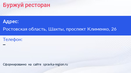 Буржуй, ресторан по адресу Ростовская область, Шахты, проспект Клименко, 26 в дальнейшем Организация, размещена в следующих категориях: